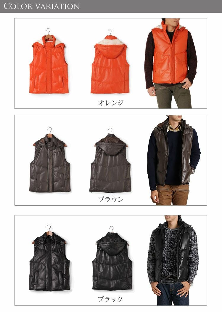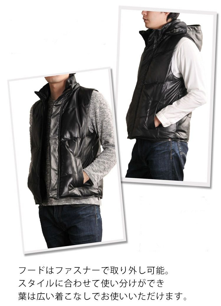 | 商品名:ラム レザー ダウン ベスト メンズ フード付き 秋/冬 全3色 |
