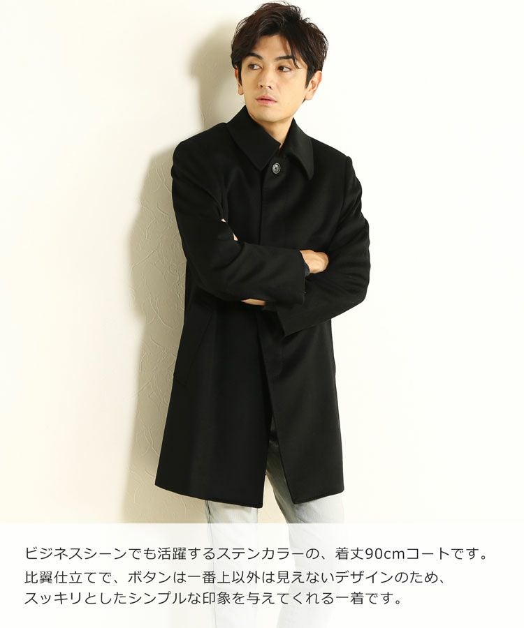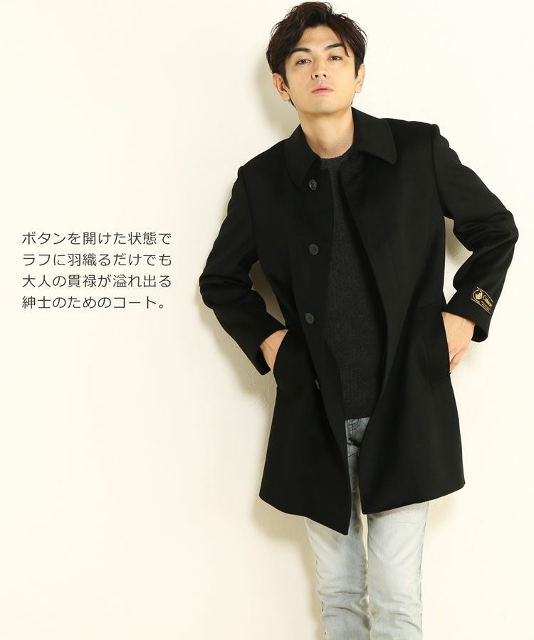 カシミヤ100%で仕立てた着丈90cmのメンズコートです。