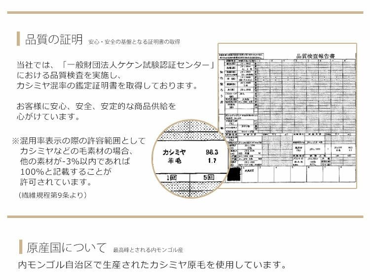 | 素材 | 表地: カシミヤ100% 裏地: キュプラ100% |