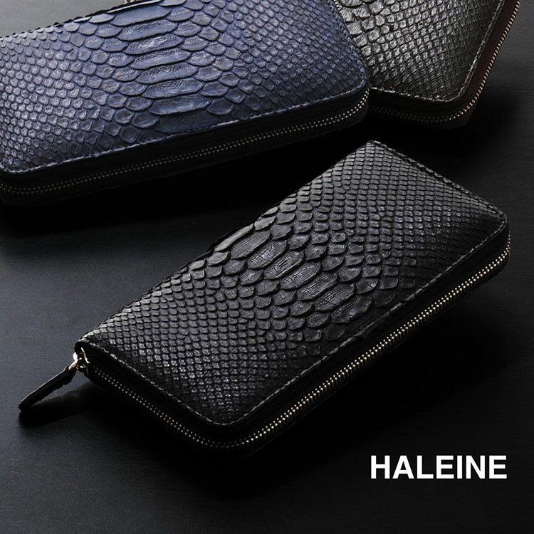 HALEINE ブランド ダイヤモンドパイソン ラウンドファスナー 長財布 一枚革仕立て メンズ ナチュラル ネイビー ダークブラウン ブラック プレゼント パイソン柄 ギフト 普段使い 父 ギフト 金運