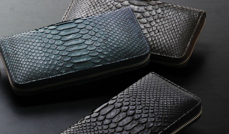 1枚革で高級感たっぷりのダイヤモンドパイソンファスナー財布。