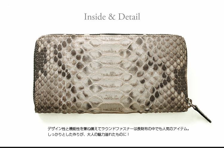 | 備考 | ・ダイヤモンドパイソンの1枚革を使用しています。 ・各ポケット内側は生地になっております。 ・金具カラー/シルバー |