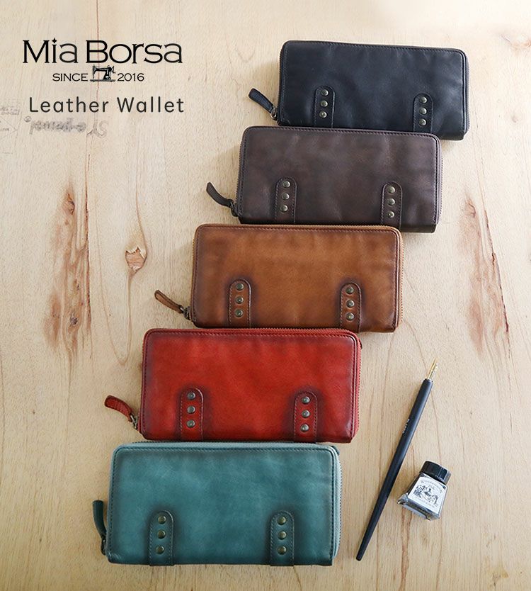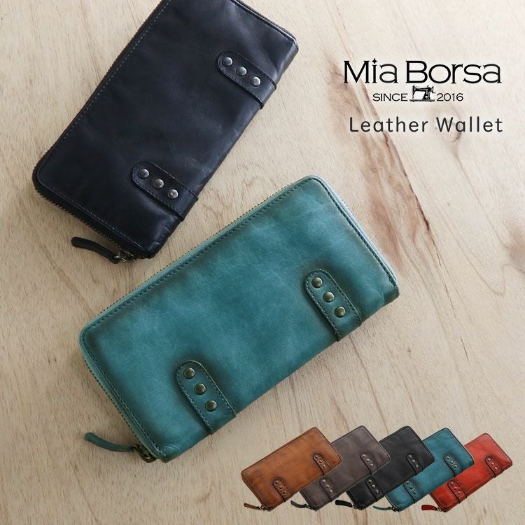 レザー 財布 メンズ 本革 ラウンドファスナー 長財布 アンティーク風 Mia Borsa 牛革 4FC