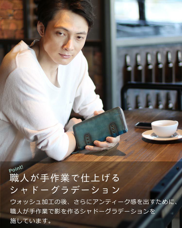 レザー 財布 メンズ 本革 ラウンドファスナー 長財布 アンティーク風 ブランド Mia Borsa 牛革 ウォッシュ加工 かっこいい シャドー 革 プレゼント ギフト 普段使い ギフト