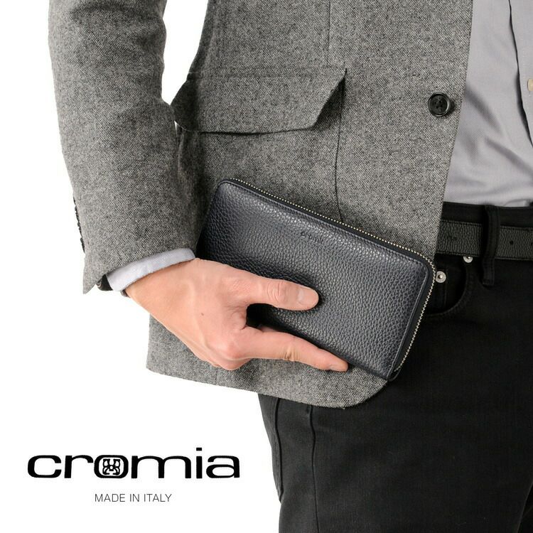 [cromia] クロミア 牛革 長財布 メンズ ラウンドファスナー イタリア製 財布 メンズ バイカラー メンズ ブラウン ネイビー ブラック プレゼント ギフト 普段使い 春財布