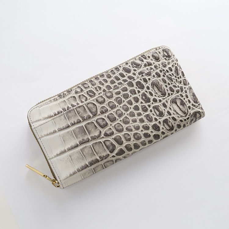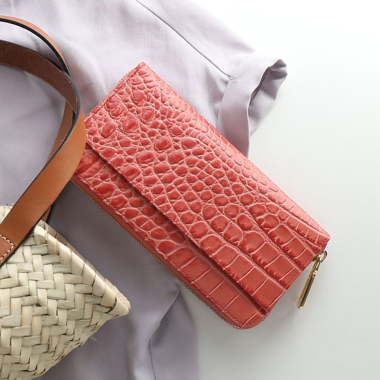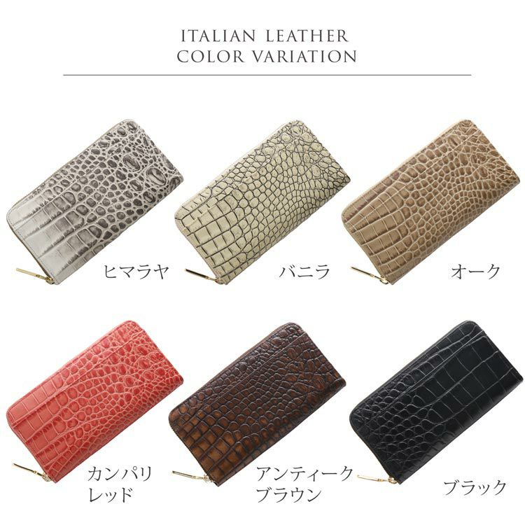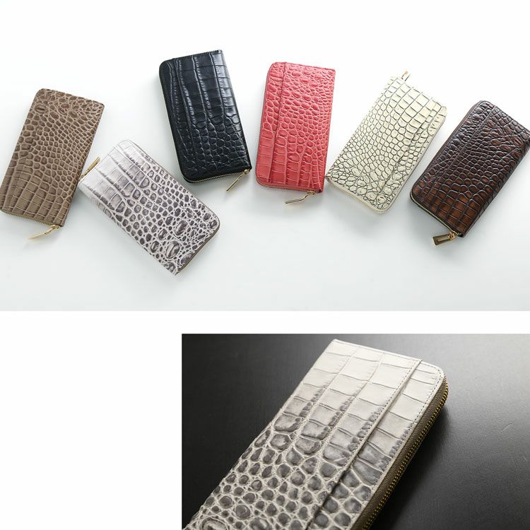 ・イタリア製の牛革にクロコダイルの型押しを施しています。 ・ファスナーチャームは真鍮を使用しています。 |
