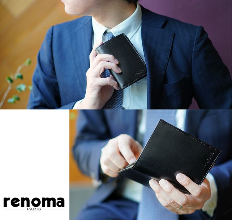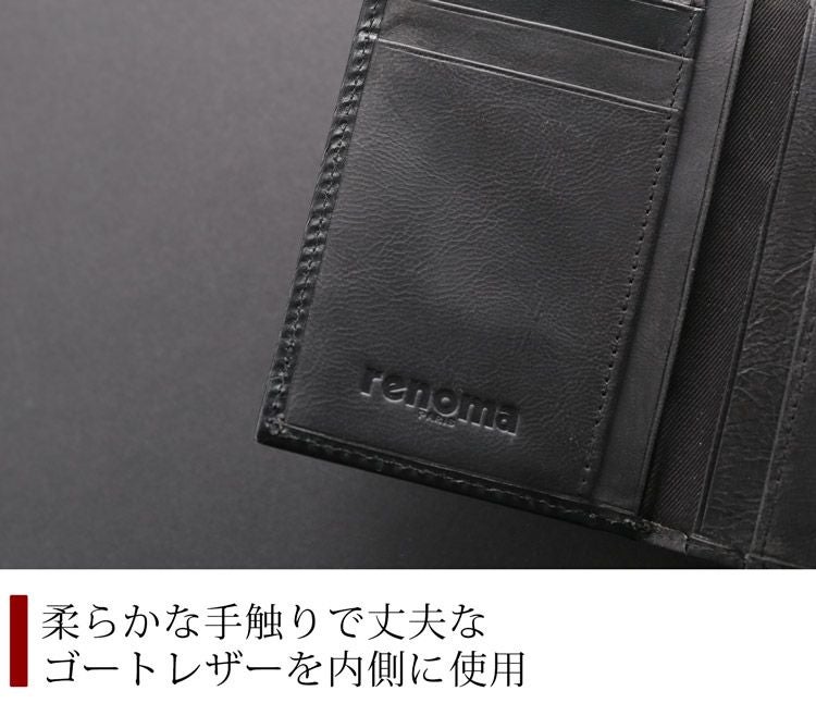 カード ウォレット メンズ コンパクト 財布 牛革 レザー 本革 renoma 小さい ミニ カード 現金 使いやすい 極小 スリム ゴート 紳士 ビジネスギフト プレゼント