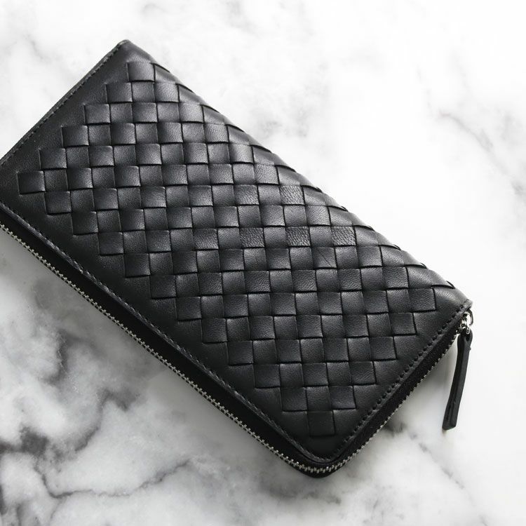 柔らかなラムレザーを編み込んだイントレチャートのラウンドファスナー長財布