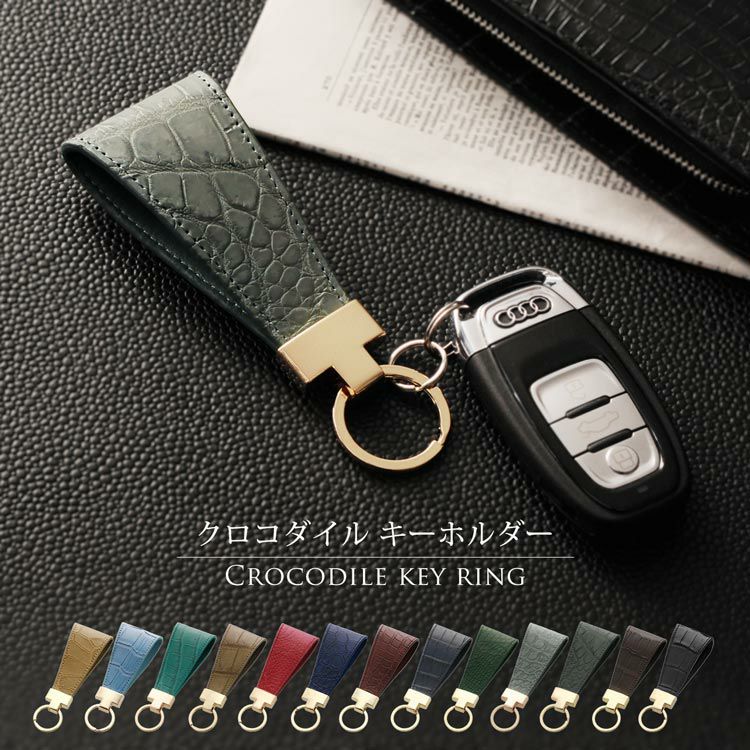 天然皮革 エキゾチックレザー クロコダイル マット加工 キーホルダー/メンズ本皮 本革 鰐 本革クロコダイル レザー キーホルダー キーリング 車 バイク プレゼント ギフト
