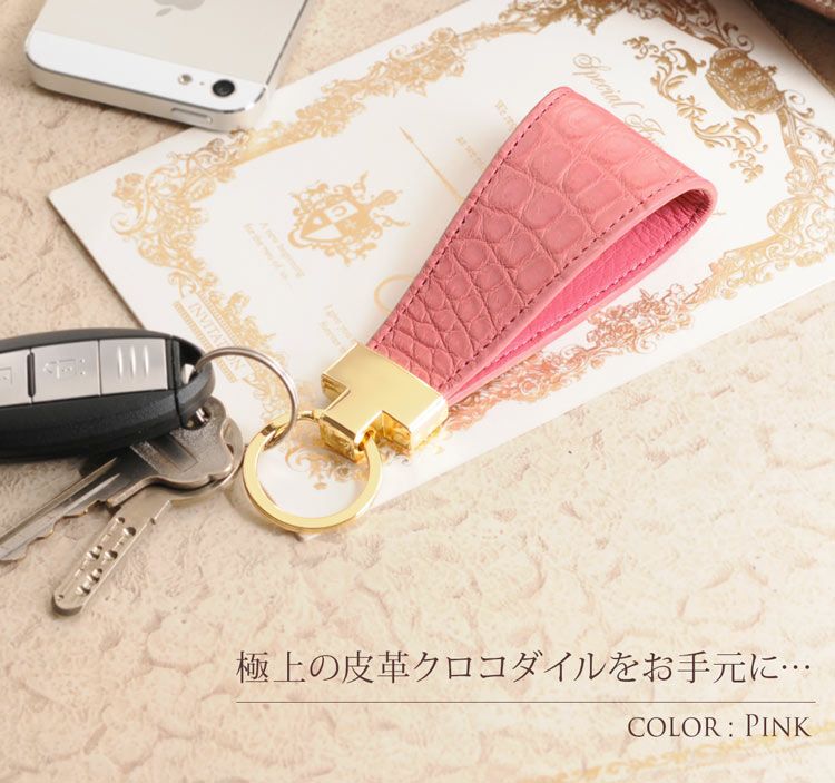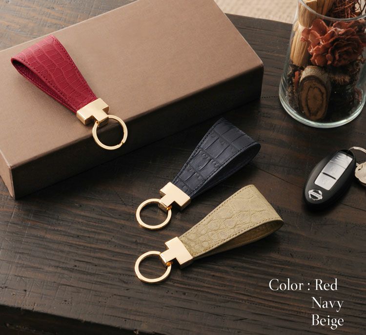 極上素材のクロコダイルを使用したキーホルダー。