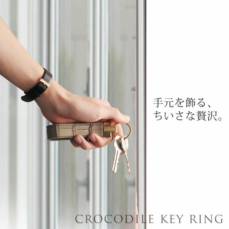 迫力のあるクロコダイルにゴールドの金具を合わせた高級感のあるキーホルダー。