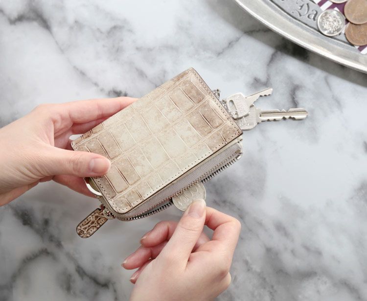 希少なクロコダイルの革を贅沢に使用、鍵をオシャレに収納。