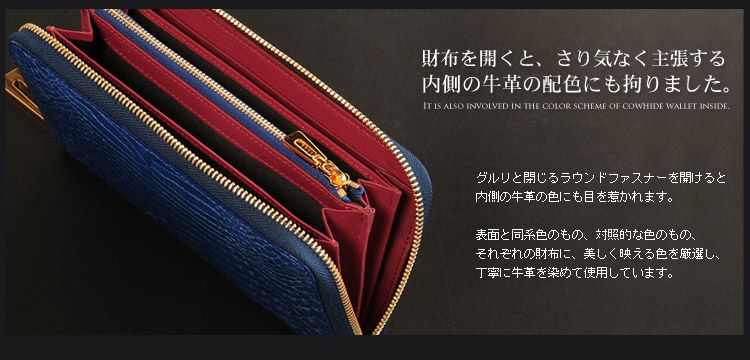 革に美しい光沢を放つシャイニング加工を施した、まるで本物の宝石のように輝く長財布です。●素材