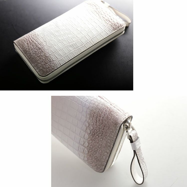 その贅沢な鰐革を使用して作ったラウンドファスナー長財布です。
