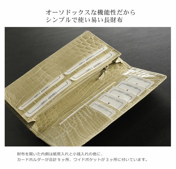 | 商品名:クロコダイル メンズ 長財布 無双 シャイニング 加工 一枚革 / ヘンローン / 束入れ |