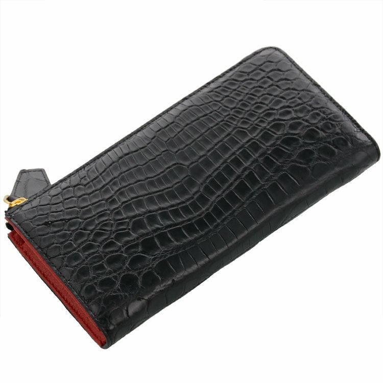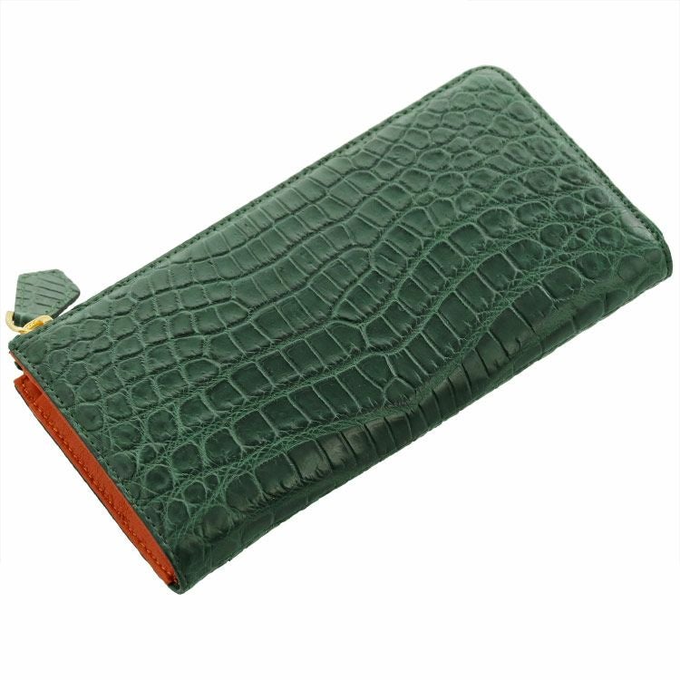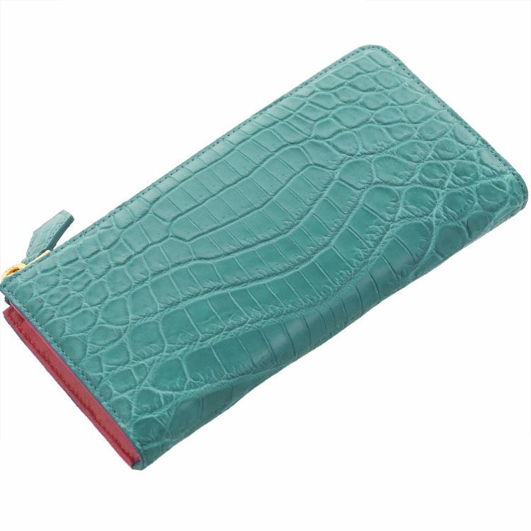 クロコダイル&パイソンの高級皮革を使用し、シンプルで使いやすいL字ファスナー財布。