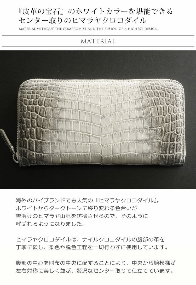 天然皮革 エキゾチックレザー ヒマラヤ クロコダイル 長財布 メンズ ラウンドファスナー センター取り 一枚革 ヘンローン ゴールド金具/シルバー金具 本革 クロコダイル財布 安心 保証書 付き白 ヒマラヤクロコダイル 財布 プレゼント ギフト