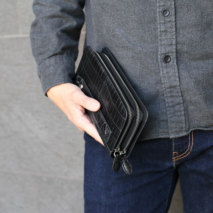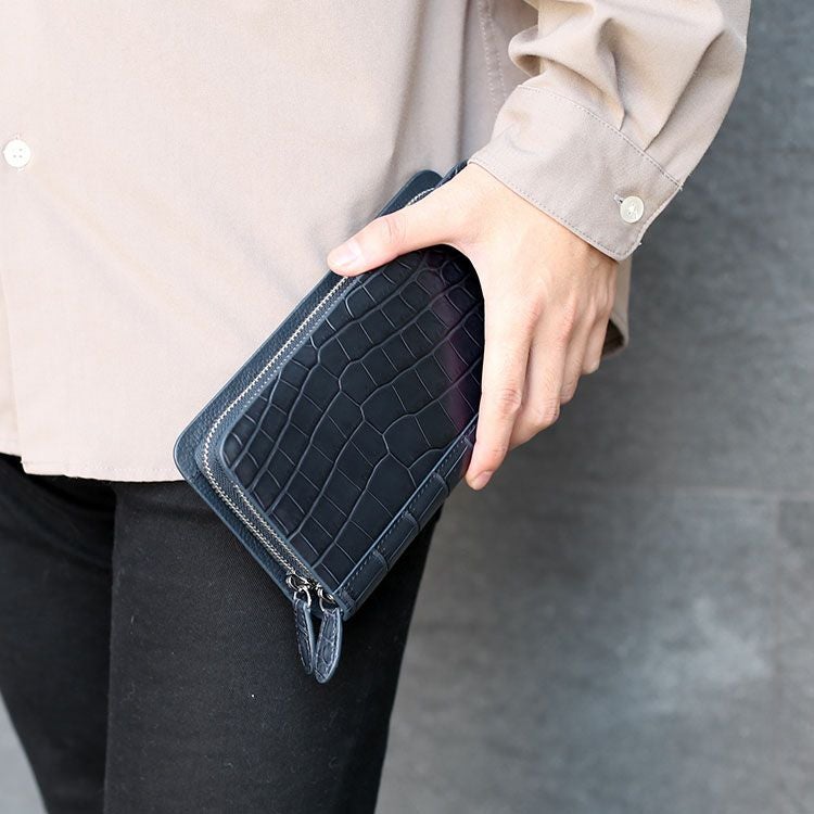 クロコダイル トラベル オーガナイザー 多機能 メンズ 長財布 ダブルファスナー パスポートケース ウォレット 本革 鰐革 マット 加工 マルチケース スマホポーチ 旅行 お財布バッグ ギフト プレゼント