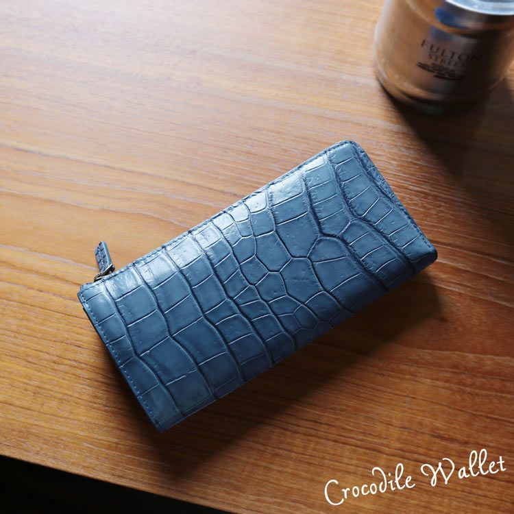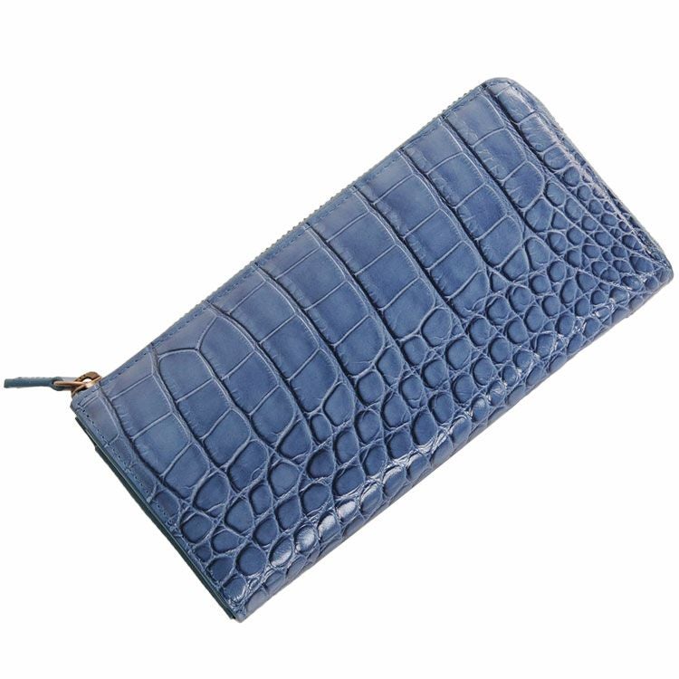 クロコダイル 長財布 L字ファスナー ブルー