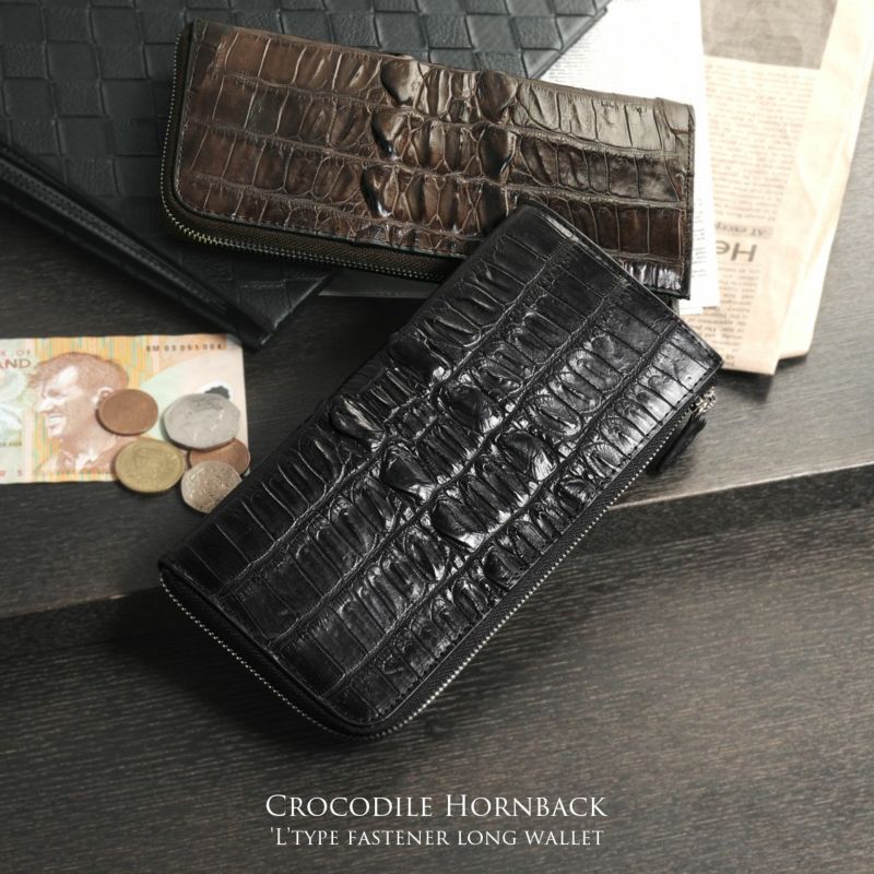 | 商品名:クロコダイル ホーンバック L字ファスナー 長財布 メンズ ワイン/ネイビー/ダークブラウン/ブラック |