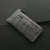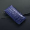 『皮革の宝石』と称される ナイルクロコダイルの革を使用しています。 数あるワニ革の中でも 高い人気を誇るエキゾチックレザーです。 表面には上品な雰囲気の マット加工を施しており、 使い込むほどに味わい深くなる 経年変化も楽しめます。 スリムな見ためですが、 紙幣・小銭・カードが 充分に入る収納力です。 外側のL字ファスナーを開けるだけで 財布の中身がすべて見えるので とても使いやすく、 お会計もスムーズに行えます。 内側の一番の特徴は、 ファスナーのない小銭入れ。 ファスナーをなくすことで お財布自体がスリムになり、 お会計にかかる時間も短縮されます。 小銭入れはしっかりと高さがあるので、 L字ファスナーを閉めれば 中身が飛び出す心配もありません。 クロコダイルの高級感を引き立てる、 ゴールドカラーのファスナーを使用しています。 ファスナーチャームにもクロコダイルを使用し、 細部までこだわったデザインになっています。