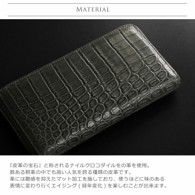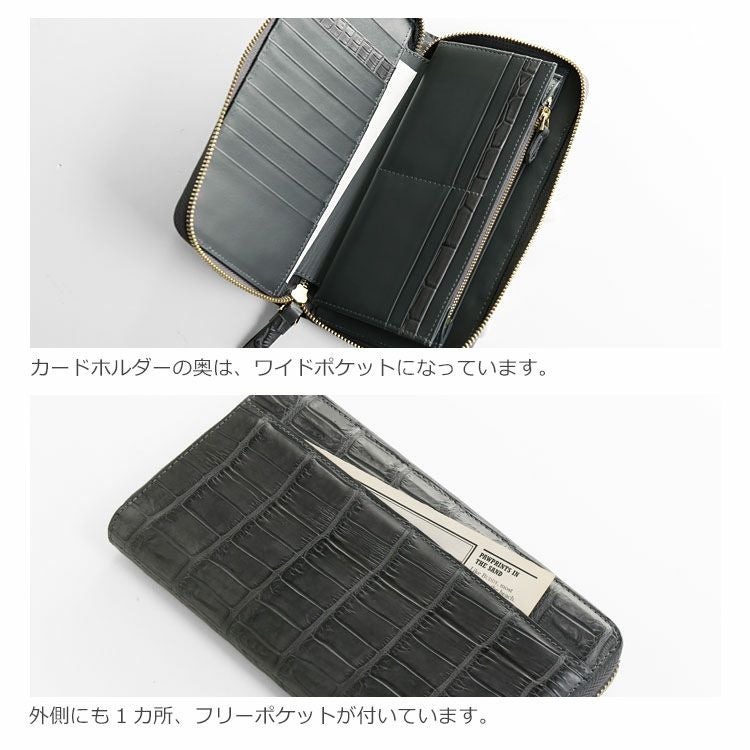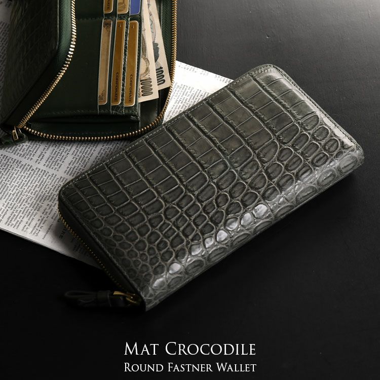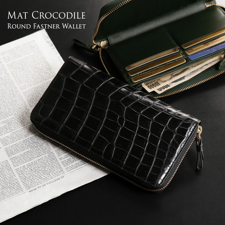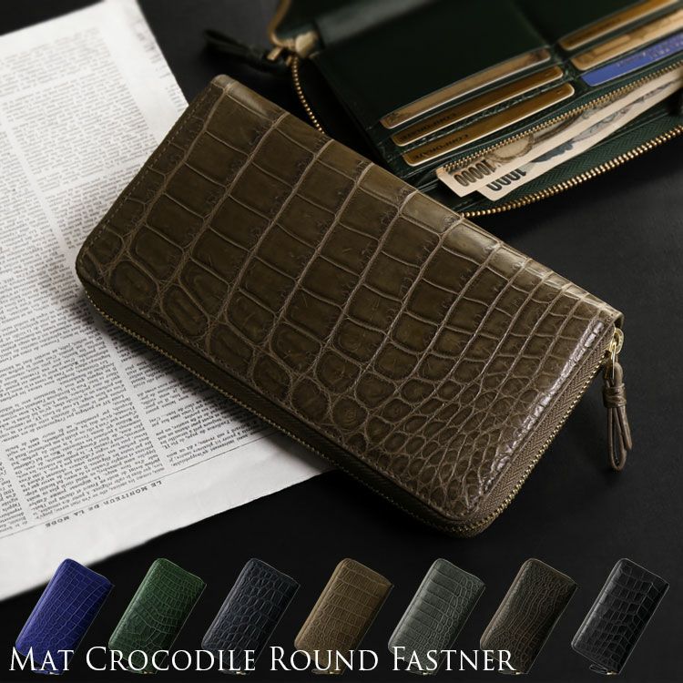 | 商品名:クロコダイル 長財布 手帳型 マット加工 メンズ ラウンドファスナー フルオープン |