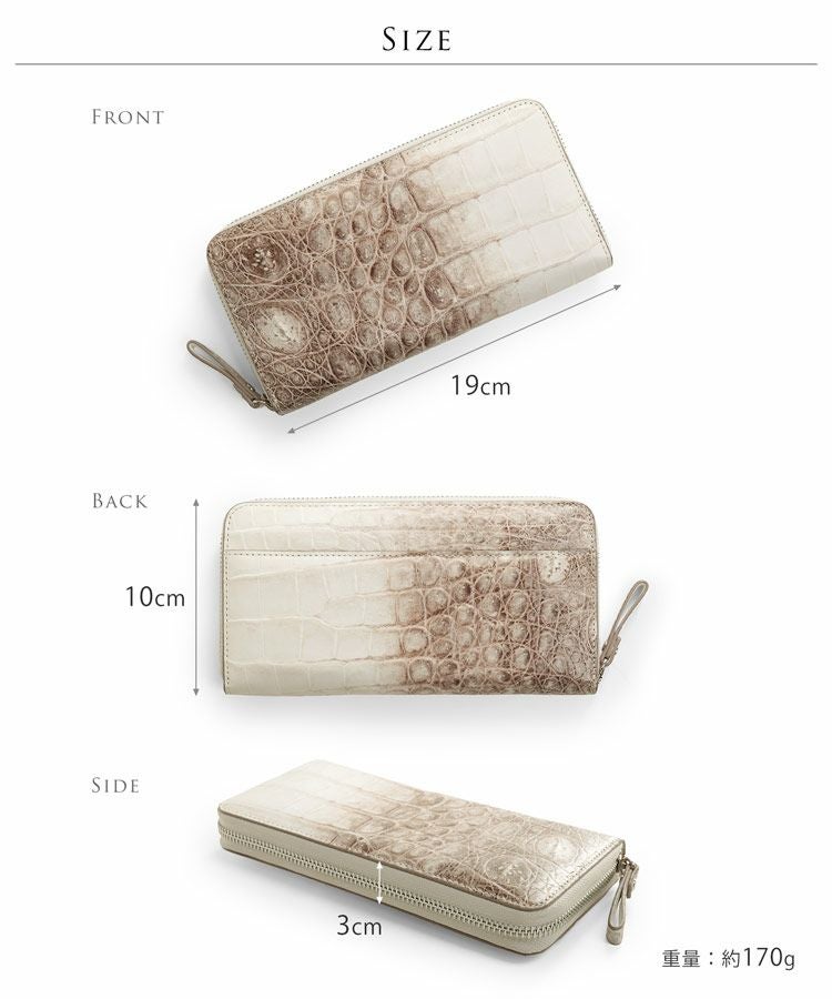 天然皮革 エキゾチックレザー 長財布 メンズ 本革 革 ヒマラヤ クロコダイル マット 財布 レザー ウォレット 使いやすい 大きく開く 男性用 きれいめ ラウンドファスナー ワニ革 白 ホワイト ギフト