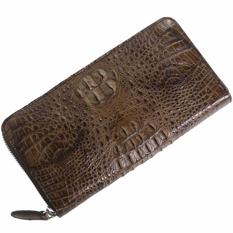 ゴツゴツした印象のクロコダイルホーンバックを使用したラウンドファスナー長財布。