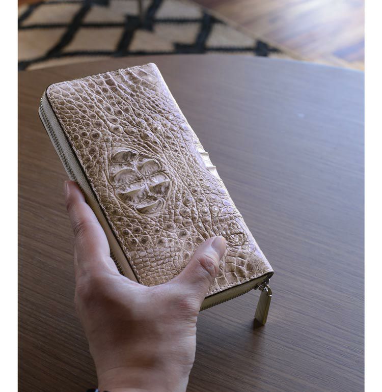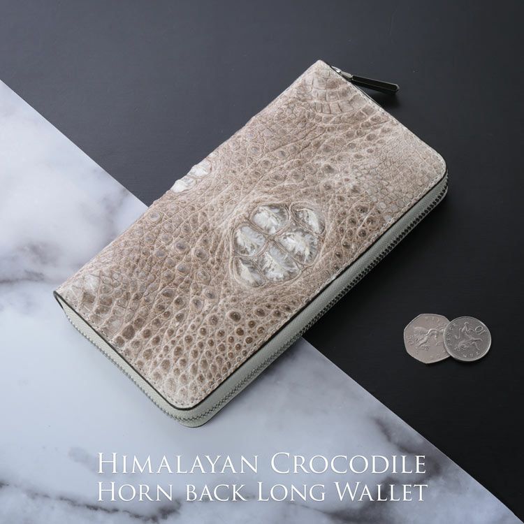 海外のハイブランドも大注目のレザー、ヒマラヤクロコダイルを使用したラウンドファスナー長財布。