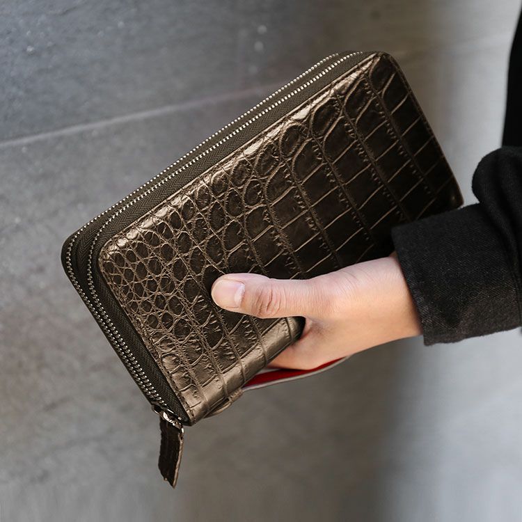 クロコダイル オーガナイザー クラッチバッグ ダブルファスナー マット加工 メンズ 長財布 多機能財布 トラベルウォレット 持ち手付き 父 プレゼント 父の日 4FA (06001623r)