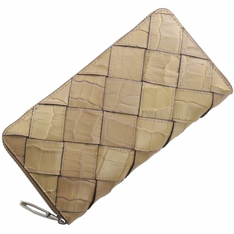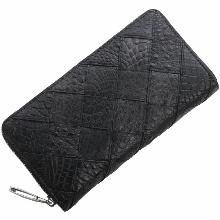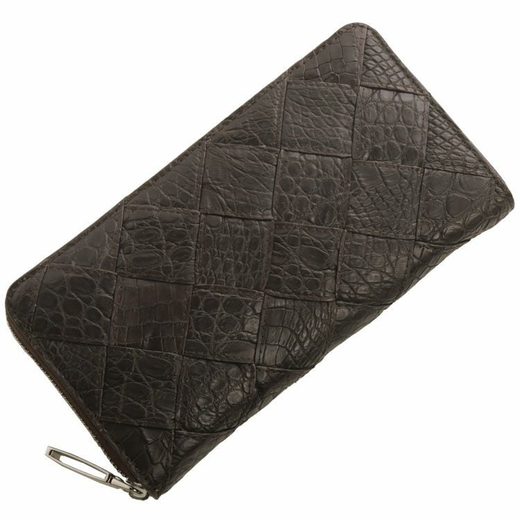 クロコダイル ラウンドファスナー 長財布 メンズ メッシュ デザイン シルバー金具 4FA