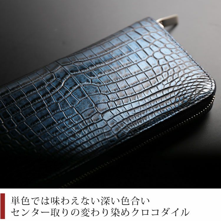 クロコダイル 長財布 メンズ センター取り 一枚革 ラウンドファスナー 日本製 変わり染め JRA 4FC