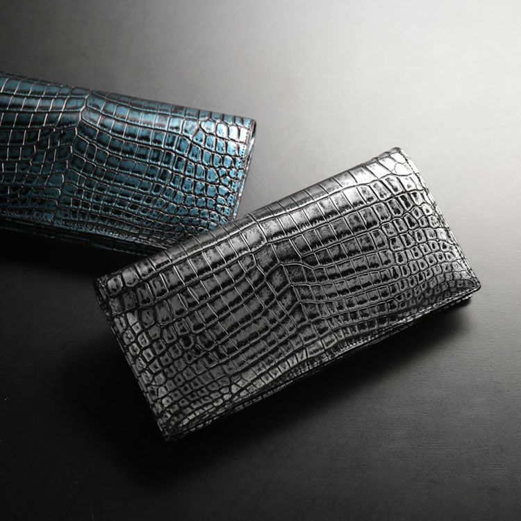 一枚のナイルクロコダイルを美しい色合いに染めて仕立てた長財布です。