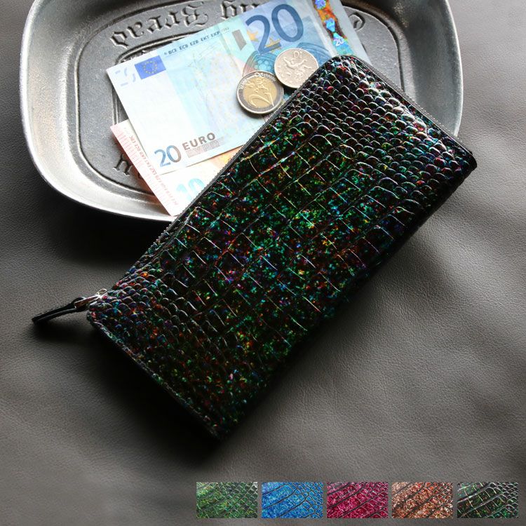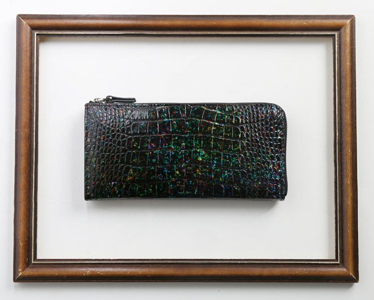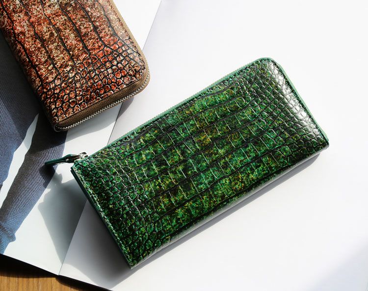 まるでアート作品かのような美しい模様のクロコダイル長財布。