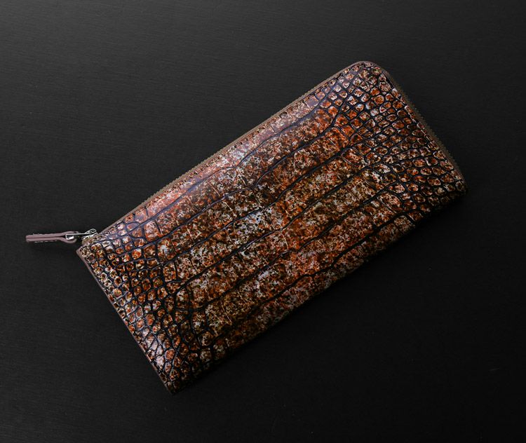フランスクロコ社の特殊な手染めの模様が絶妙にマッチした長財布。