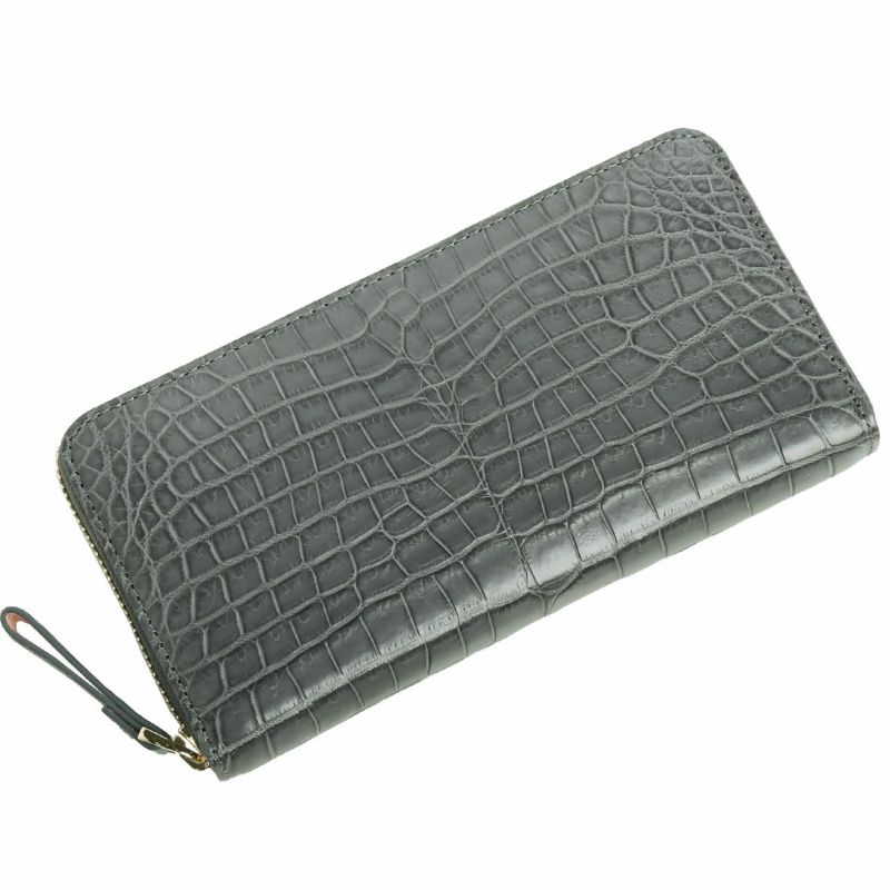 『皮革の宝石』と称されるクロコダイルを使用したラウンドファスナー長財布。