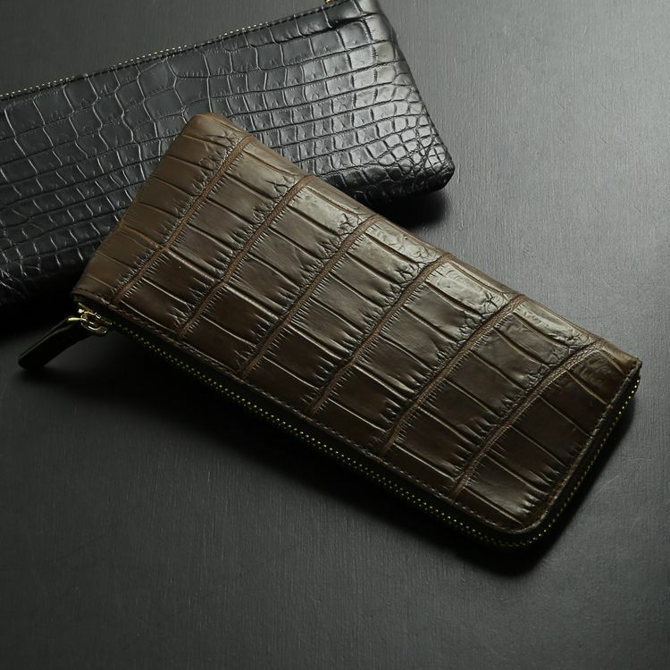 ナイルクロコダイルを贅沢に使用したスリムなL字ファスナー長財布。