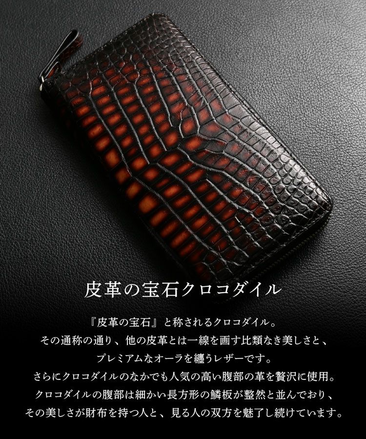 3. クロコダイル ラウンドファスナー 長財布 メンズ 極クロコダイル 地龍 一枚革 センター取り 手染め (06001864r)