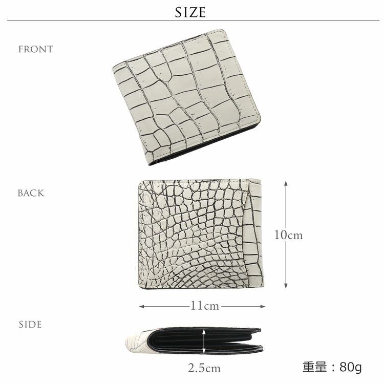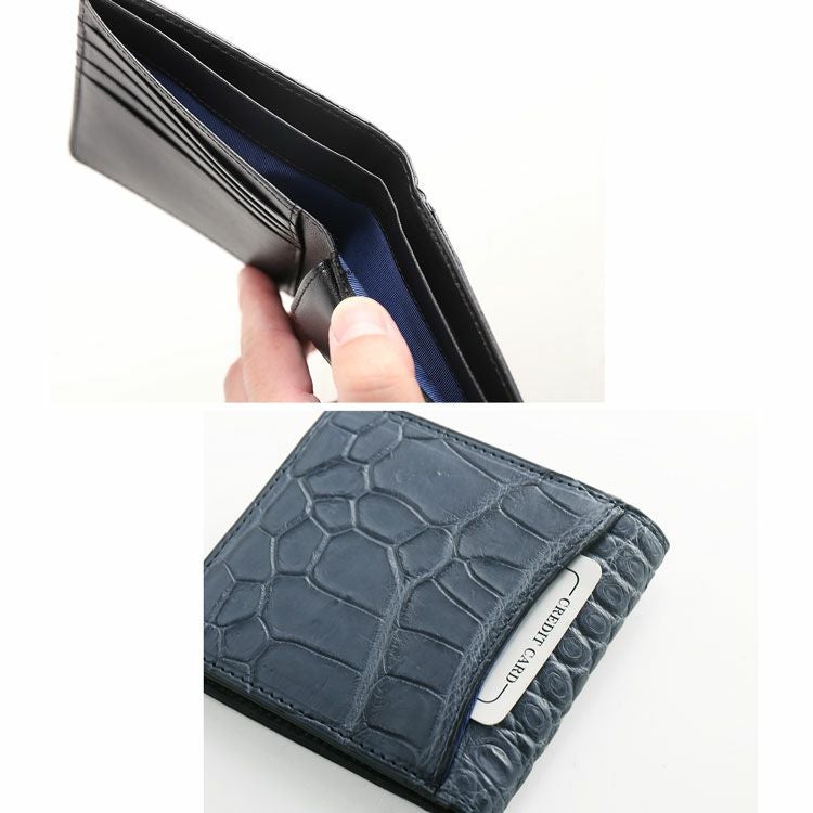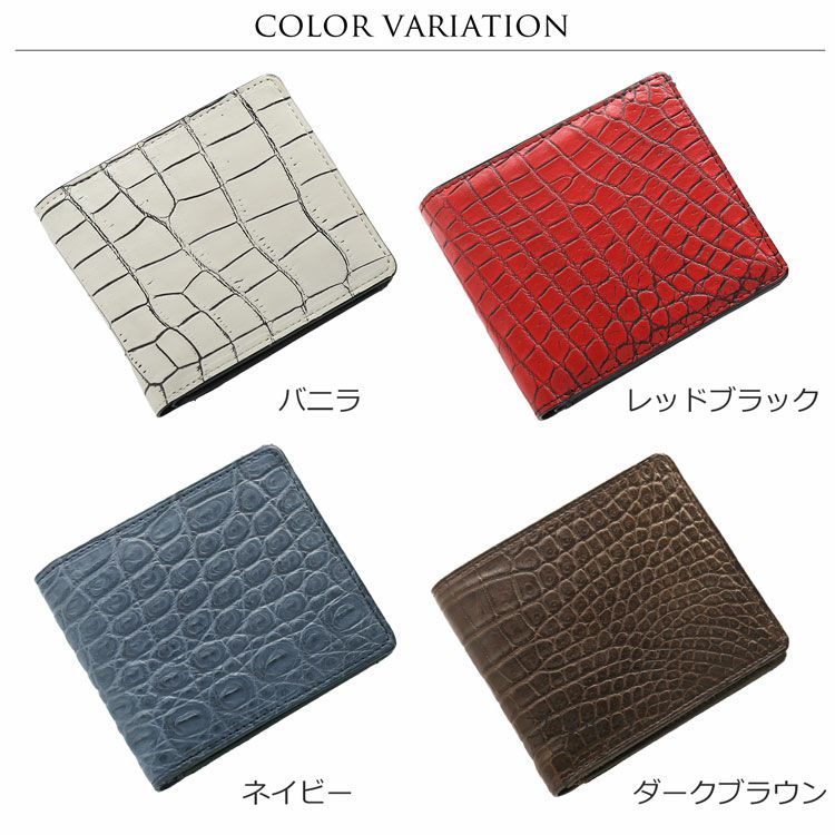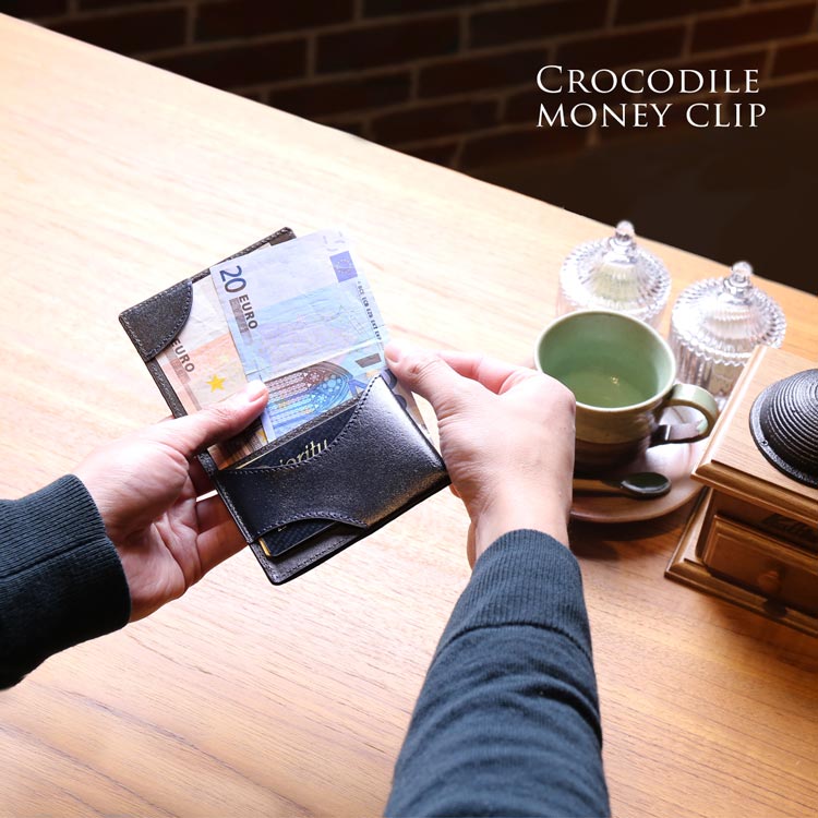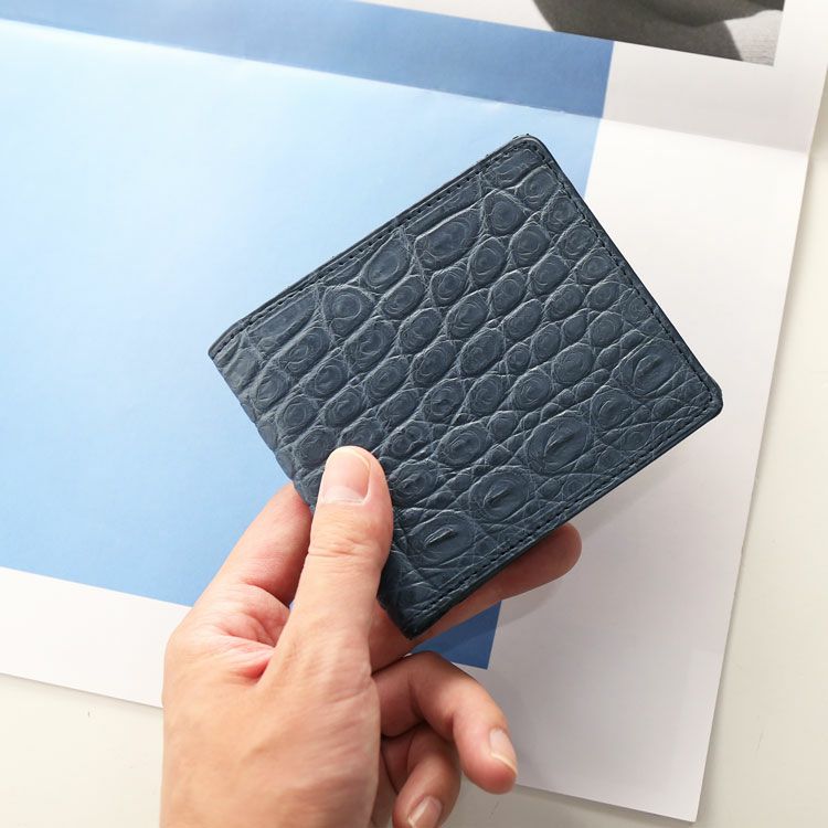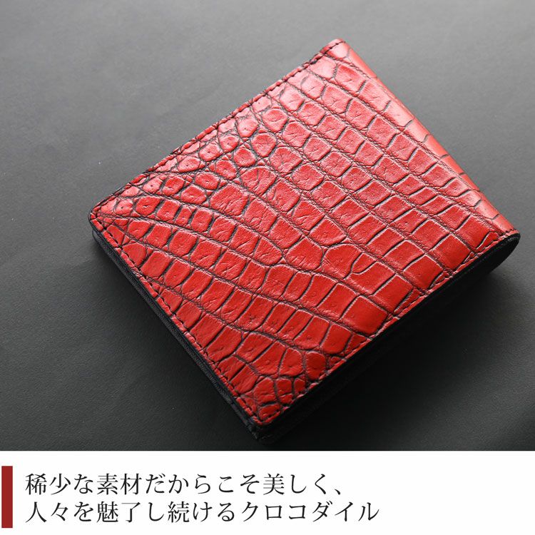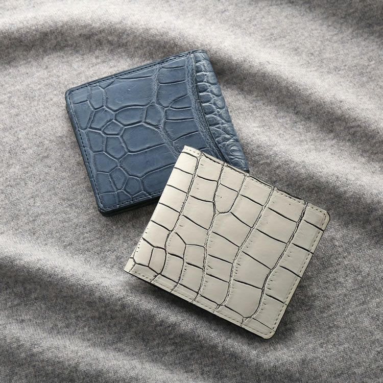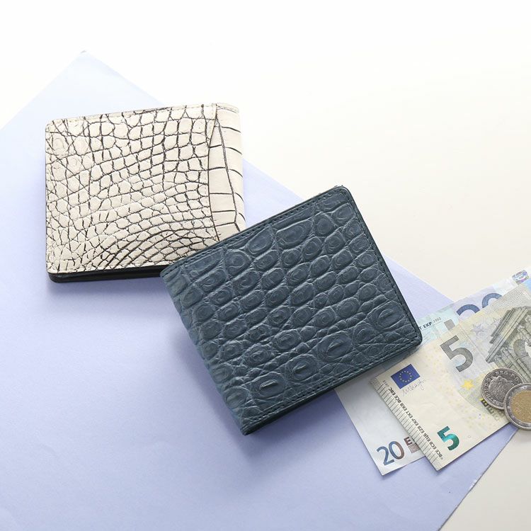 二つ折り財布は、ポケットや小さなボディバッグに収納することができ、高級感のあるクロコダイルを使った大人のための二つ折り財布です。