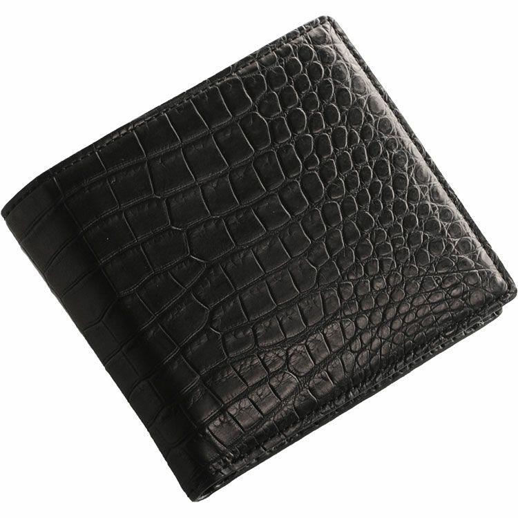 天然皮革 エキゾチックレザー スモールクロコダイル 二つ折り 財布 小銭入れ付き ポロサス メンズ ブラック 折り財布 本革 革 レザー 黒 安心 保証書 付き プレゼント ギフト 普段使い ギフト