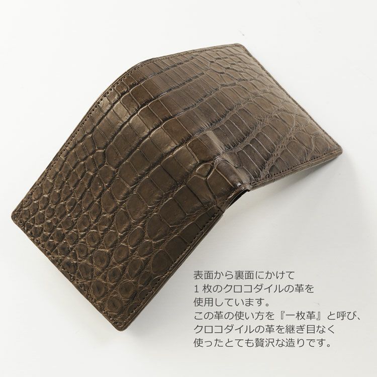 ナイルクロコダイルで仕立てた日本製の二つ折り財布。