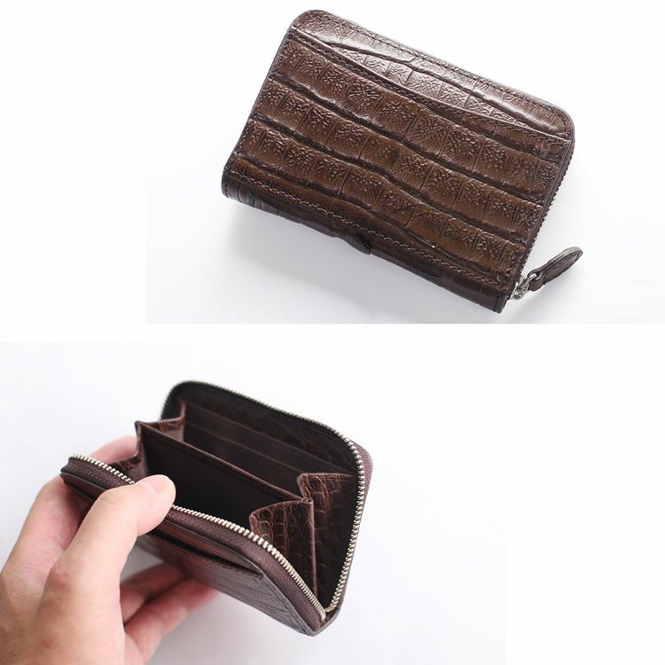 クロコダイル ホーンバック メンズ 小銭入れ【ネコポスで送料無料】ミニ財布 ラウンドファスナー コインケース 本革 コンパクト財布 キャッシュレス 小さい 軽い お財布 プレゼント ギフト