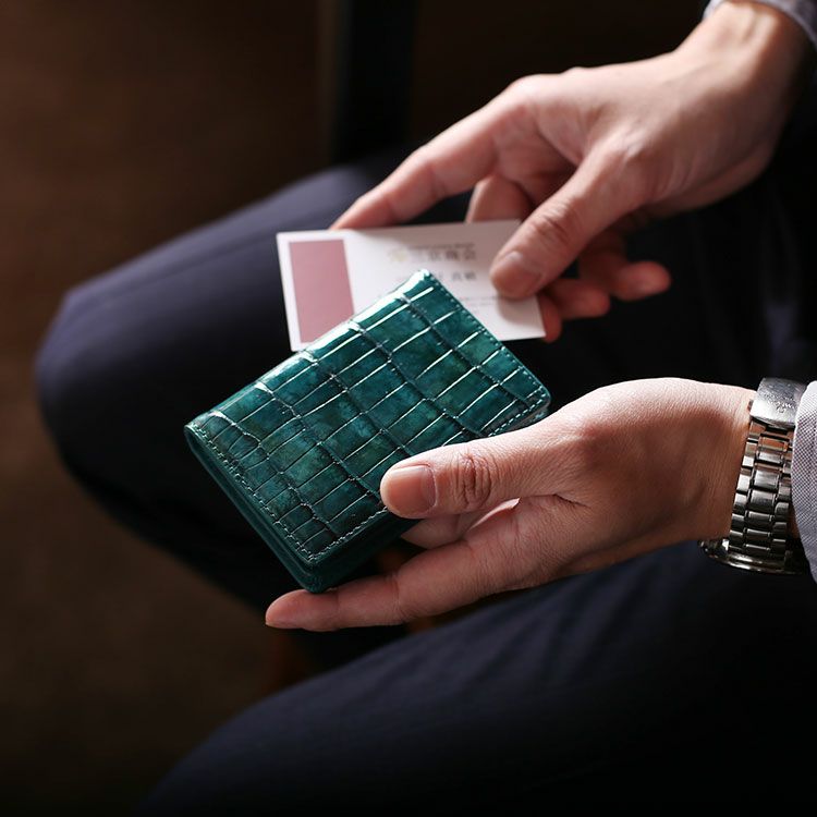 美しい艶が魅力のクロコダイル名刺入れ。