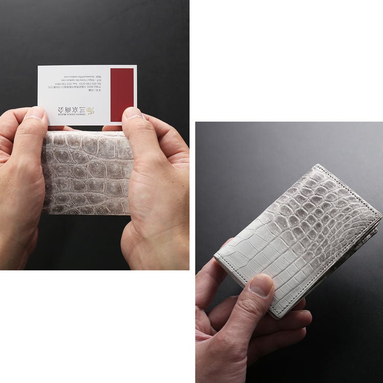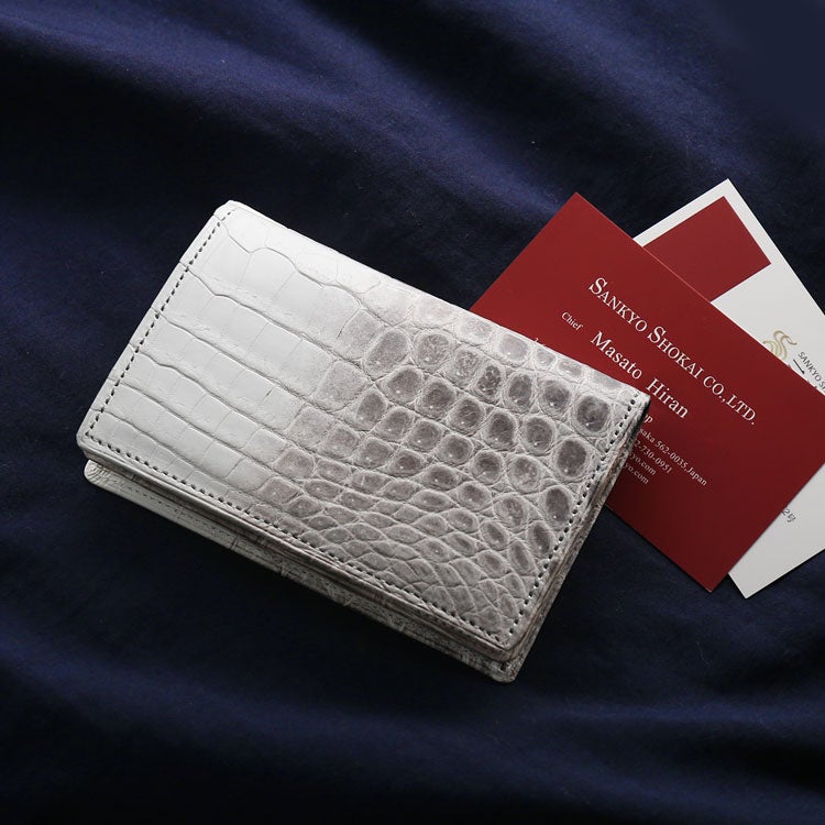 ビジネスシーンでの第一印象を変える、革の宝石と呼ばれるのにふさわしい存在感のクロコダイル(ワニ革)の名刺入れ。