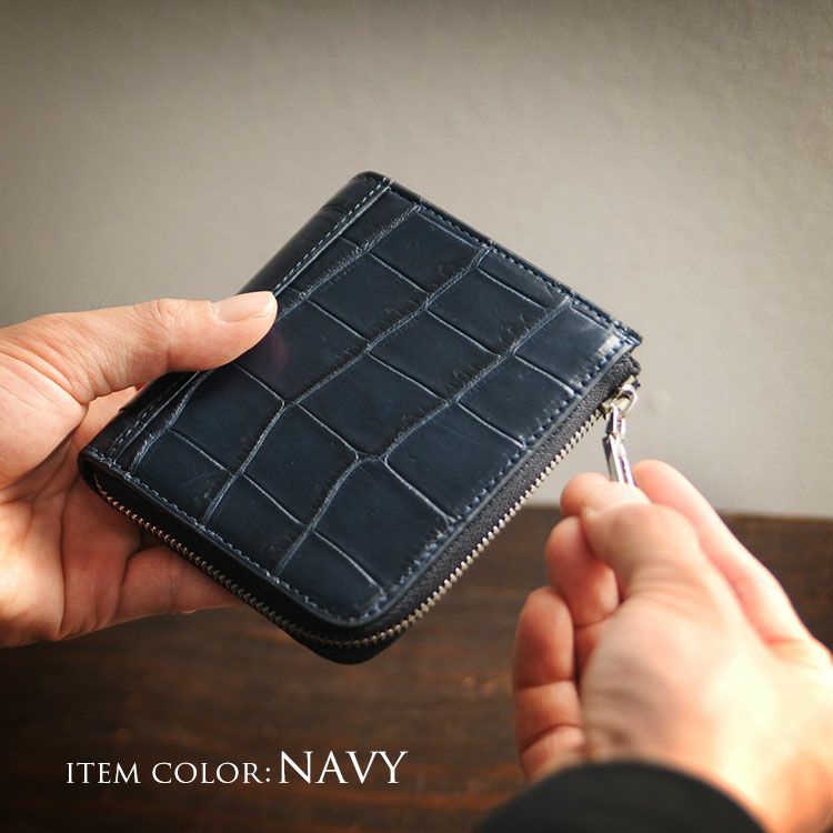 クロコダイル コンパクト L字ファスナー 財布 メンズ【ネコポスで送料無料】 4FA