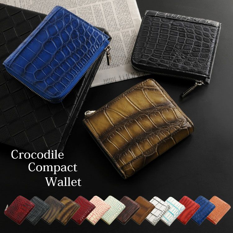 天然皮革 エキゾチックレザー 小さい ミニ 財布 メンズ 本革 クロコダイル マット L字ファスナー グラデーション 薄型 コンパクト財布 キャッシュレス 革 小銭入れ 小さい財布 男性 紳士 ミニ財布 誕生日 プレゼント ギフト 父
