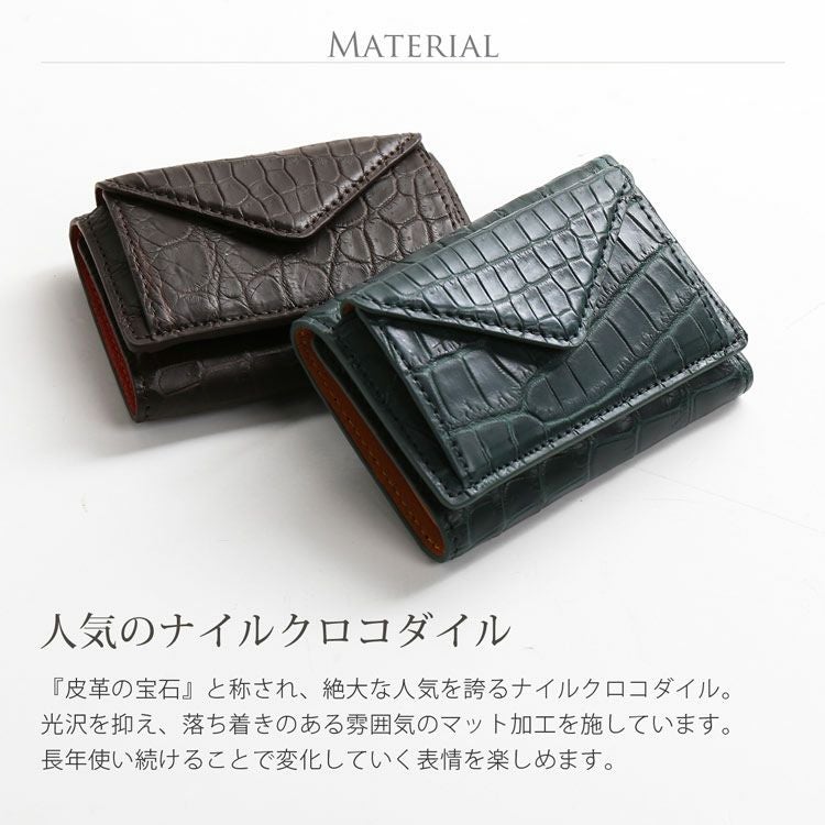 天然皮革 エキゾチックレザー ミニ財布 メンズ 本革 クロコダイル マット加工 三つ折り バイカラー 手のひらサイズ 小銭入れ付き 小さい財布 キャッシュレス ミニマリスト 極小財布 シンプル 普段使い プレゼントギフト