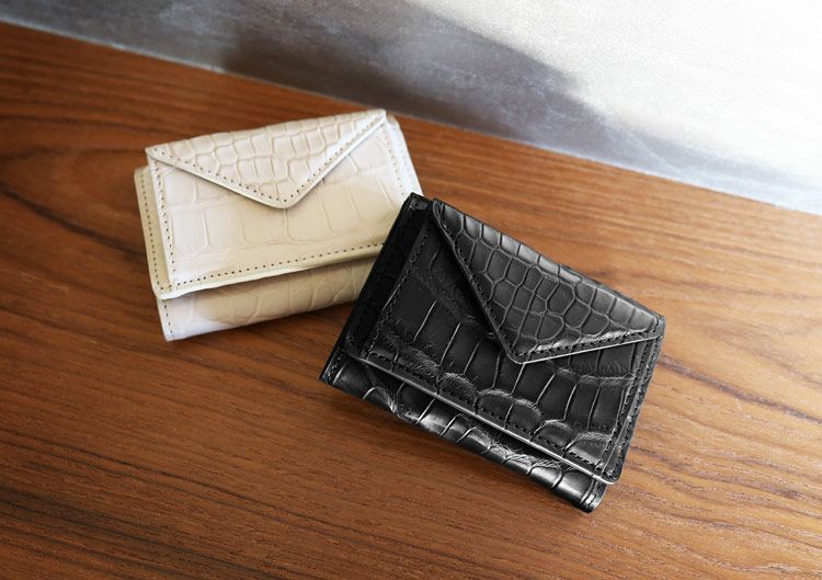 本革 ミニ財布 クロコダイル アイボリー ブラック