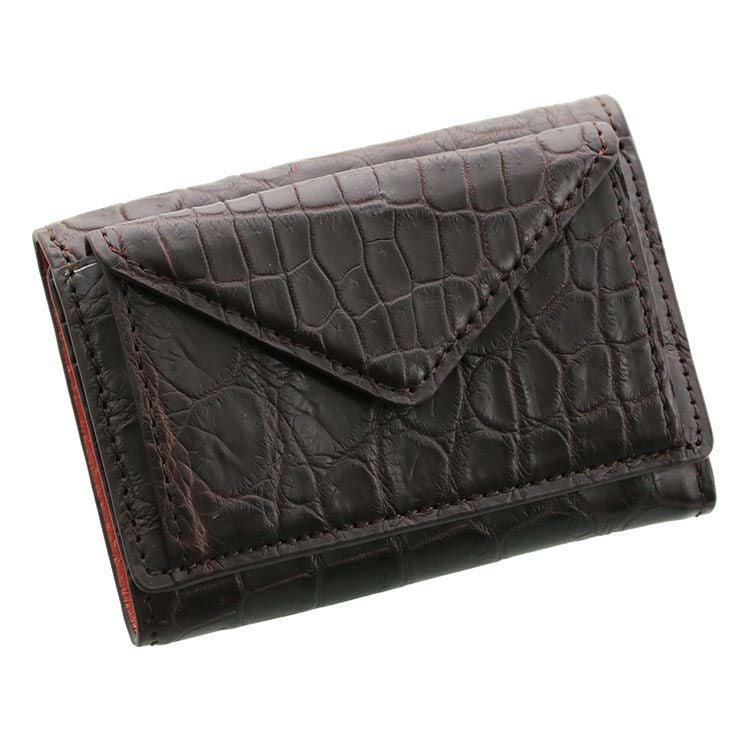 本革 ミニ財布 クロコダイル ブラック キプロス ダークブラウン