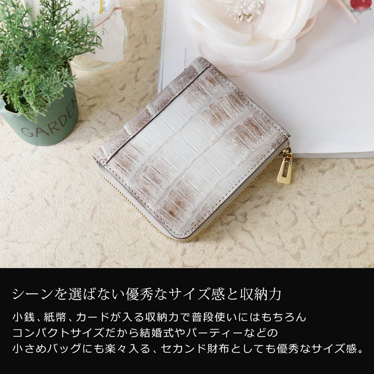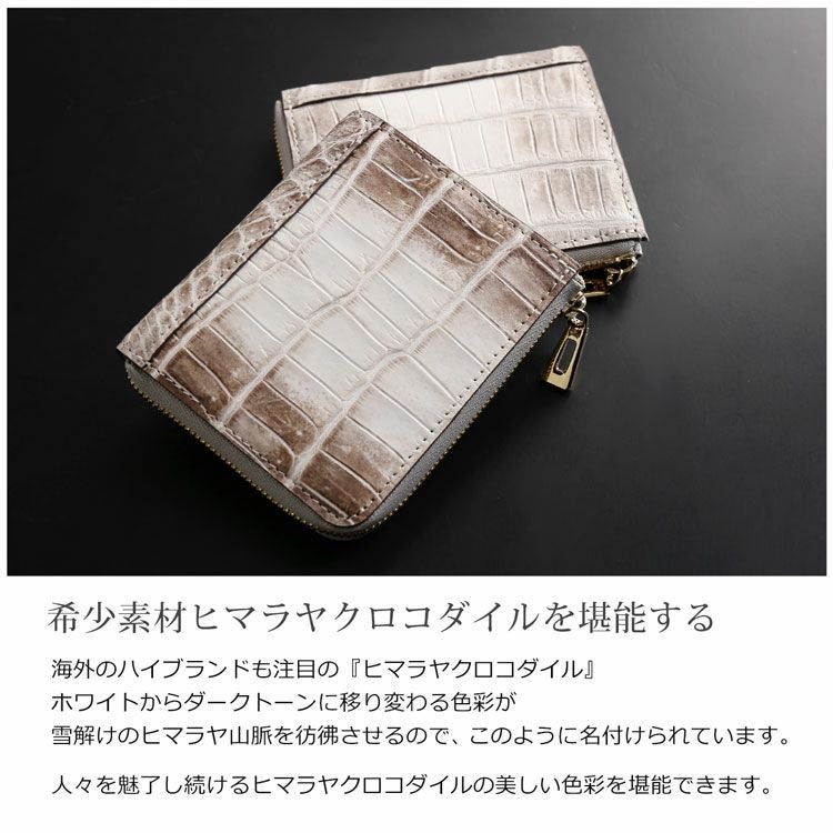 天然皮革 エキゾチックレザー ヒマラヤ クロコダイル L字ファスナー ミニ財布 マット加工 メンズ 小さい キャッシュレス 父 普段使い コンパクト 財布 小さい財布 本革 鰐革 プレゼント ギフト ミニマリスト